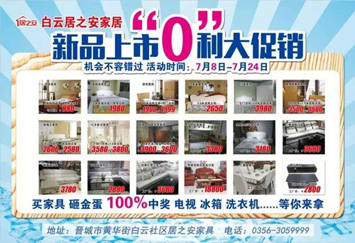 炎炎夏日,温情一夏!白云居之安给您降温降价啦!白云居之安家居汇展中心新品上市,“0”利大促销。1米8高箱床(含床头柜)亏本价:880元。